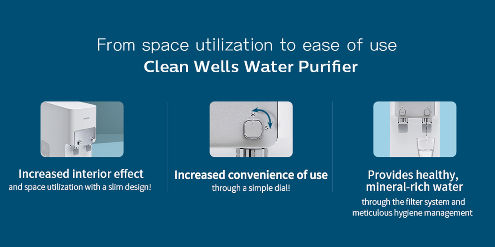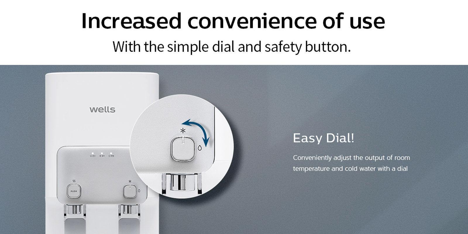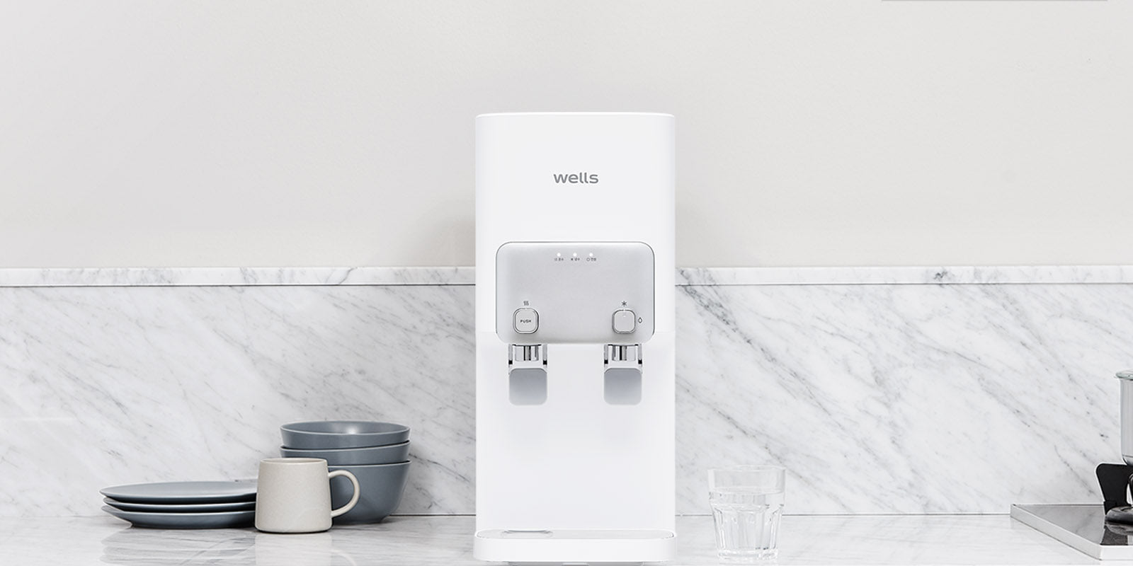 Wells Mineral Water Purifier in Australia with advanced filtration, easy dial control, space-saving design, and a hot water safety button.