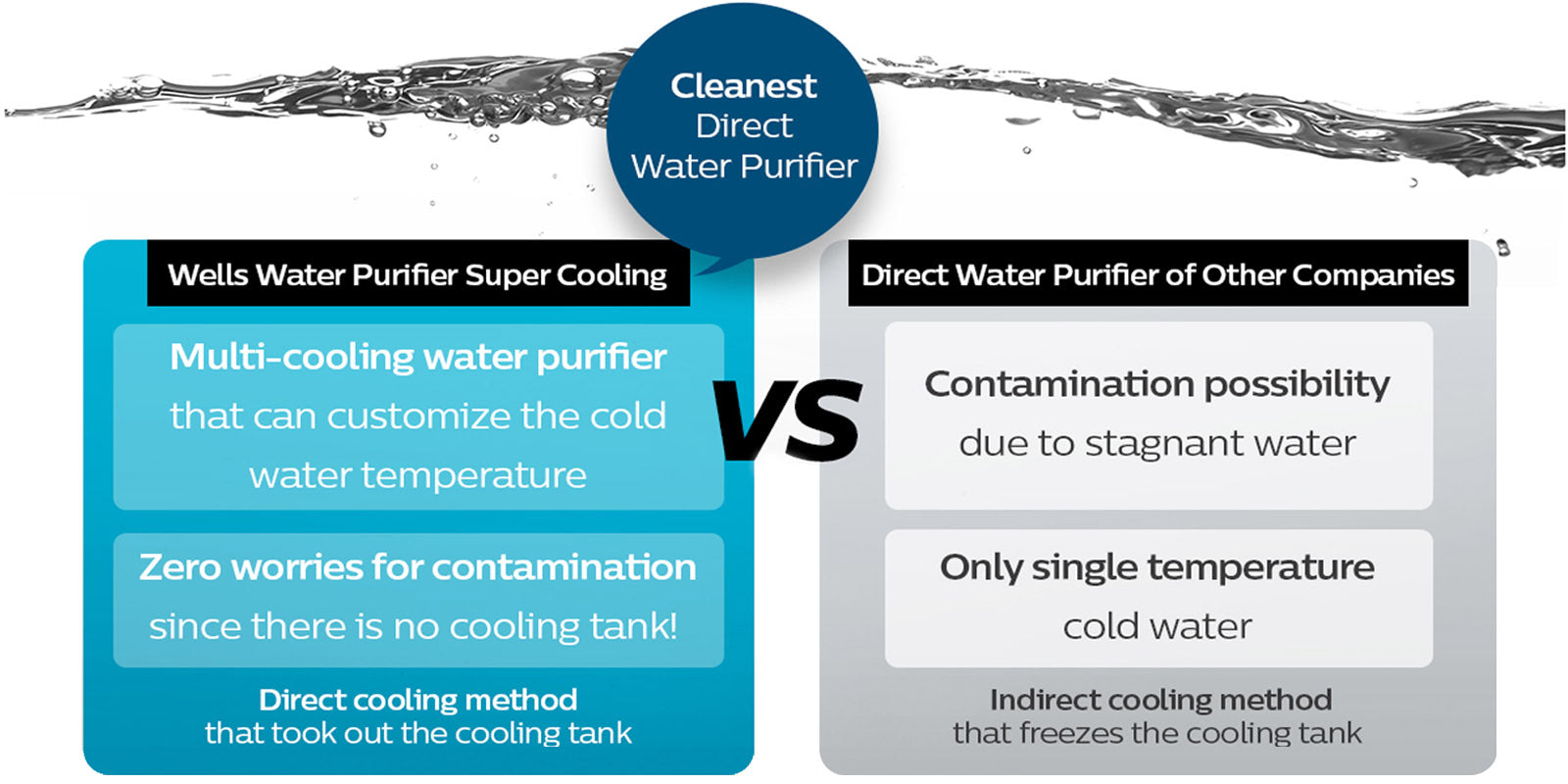 Wells uses its patented Direct Cooling System, instead of the traditional cooling tank, to deliver the cleanest cold water at various temperatures.
