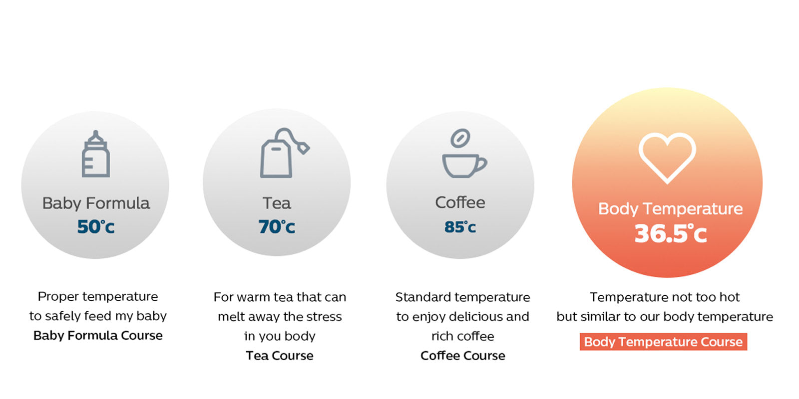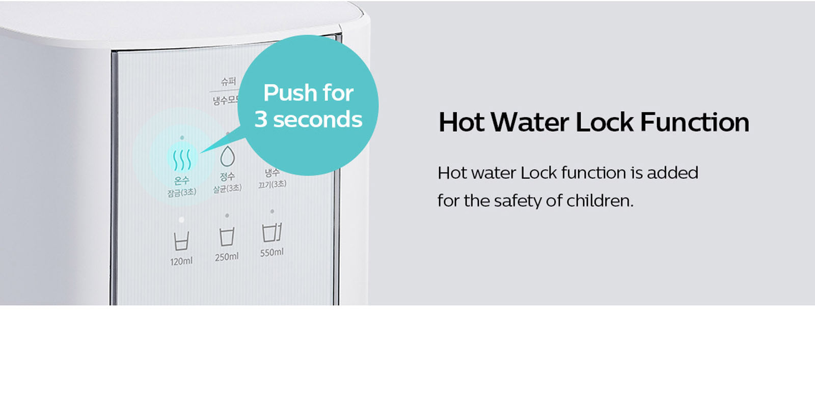 Not only hot water customized for baby formula, tea, and coffee, but also a healthy body temperature water (36.5°C) function! You can choose from the ample 4-level hot water options based on your needs.